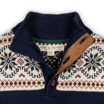 Designed with a beautiful intarsia pattern, ribbed trim, and a button placket featuring a faux suede detail, this sweater adds a timeless touch to any outfit.