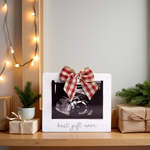 Crafted with a rustic wooden finish and soft gray lettering, the phrase “best gift ever” beautifully highlights the sonogram photo. A red and white festive ribbon adds a seasonal touch, making it a heartwarming keepsake for any home.